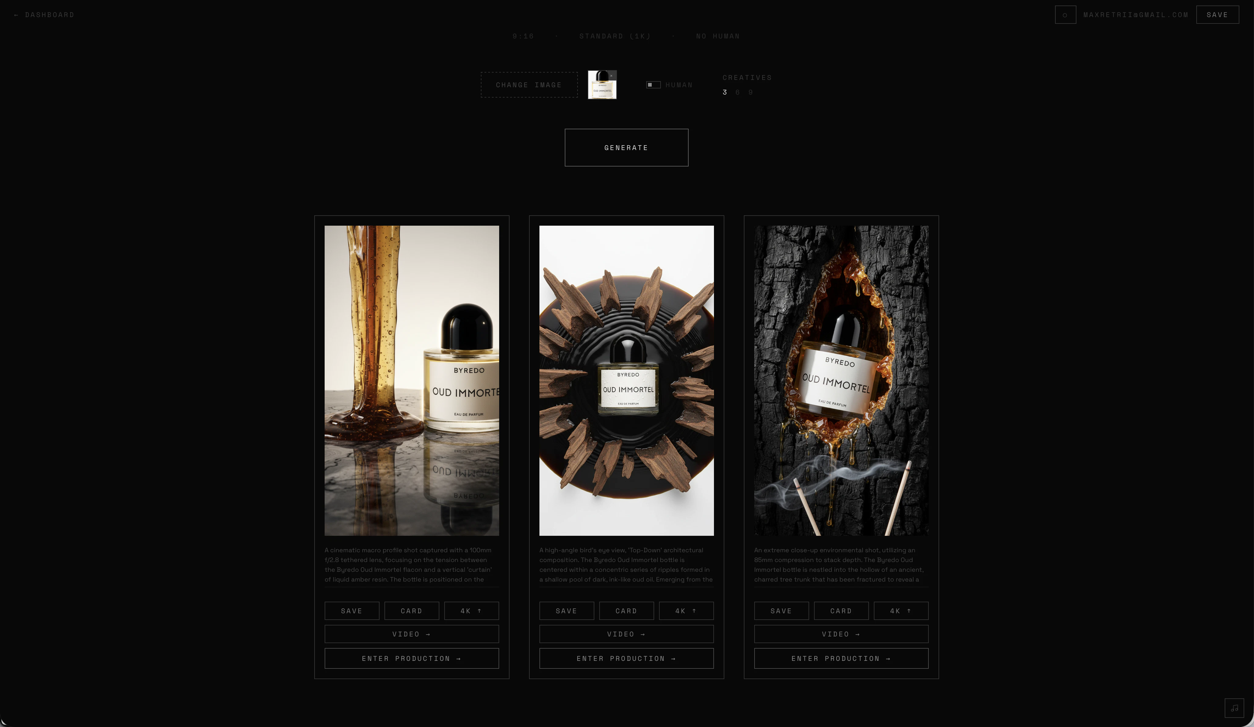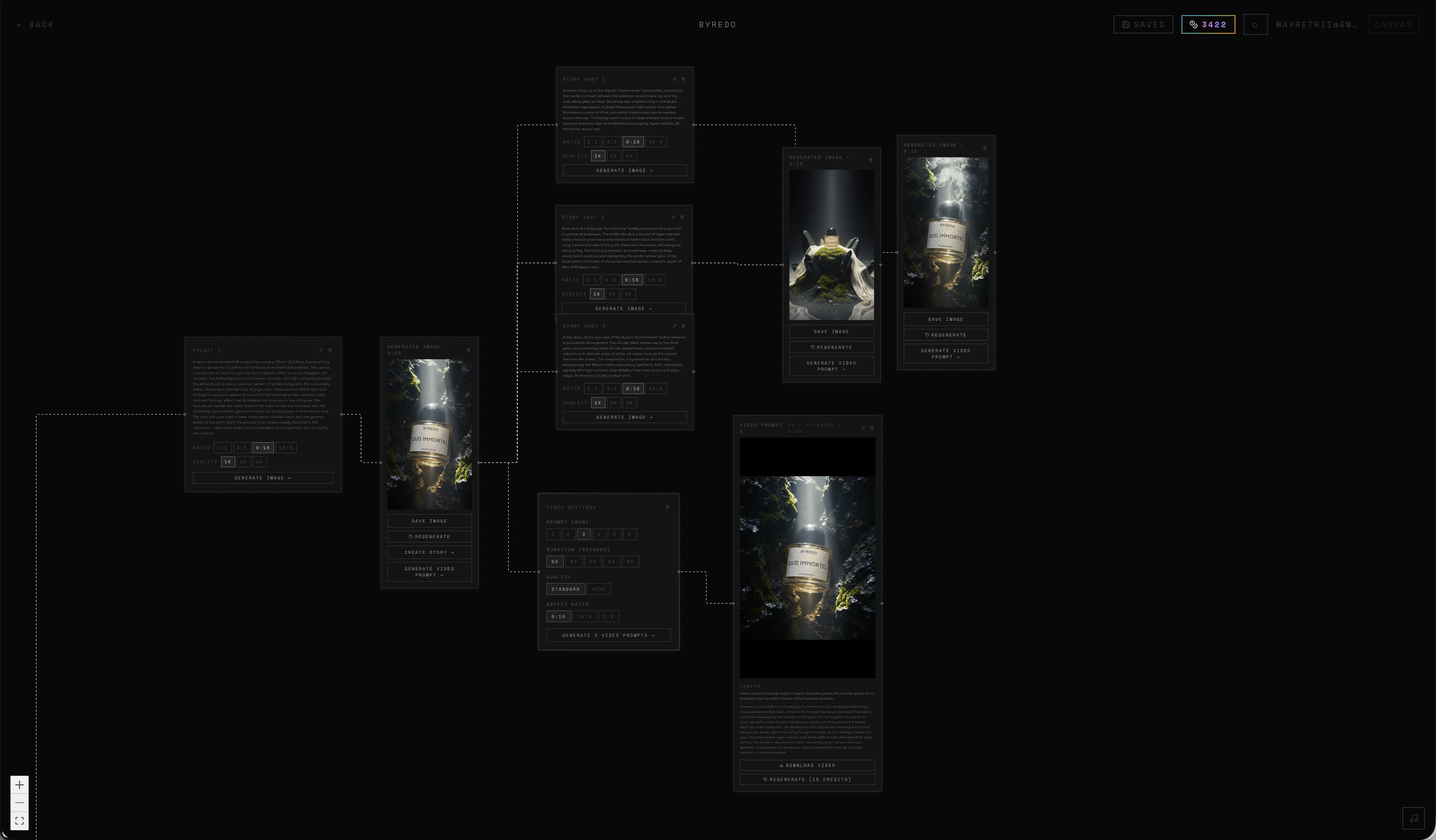 Ad Creative Factory analyzes any website URL and automatically extracts brand DNA — name, tone, values, visual language. Then it writes the prompts itself and generates production-ready ad images and videos in 24 visual styles. No prompt writing needed. You paste a URL, pick a style, and get campaigns with images and videos ready to use. Two creation modes: classic step-by-step wizard and a node-based canvas editor for advanced workflows.