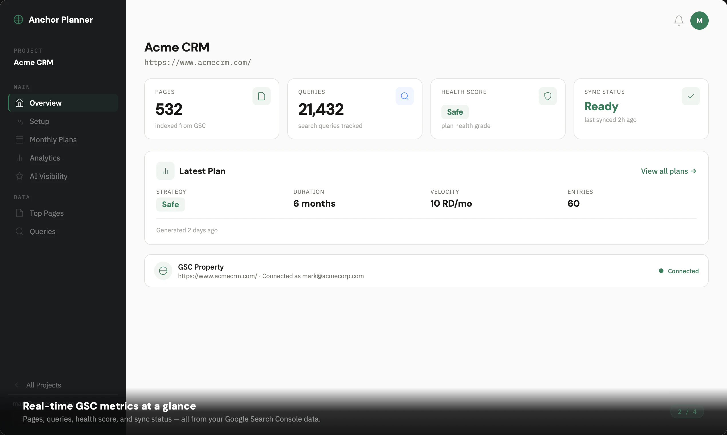 Turn GSC data into risk-scored SEO anchor plans in minutes