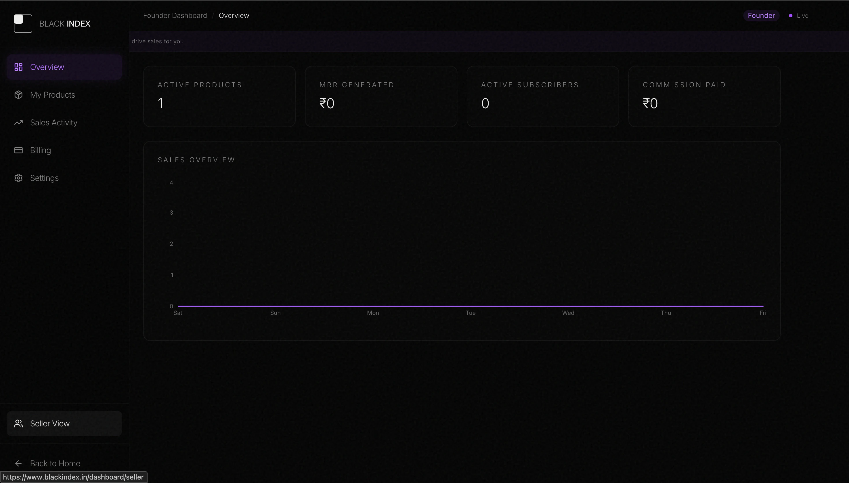 Black Index is the sales layer of the internet. Founders get distribution without spending on ads. Sellers earn recurring income by selling products they believe in. No cold outreach. No CAC burn. Just performance-based growth. List a product or start selling β get paid only when value is created.