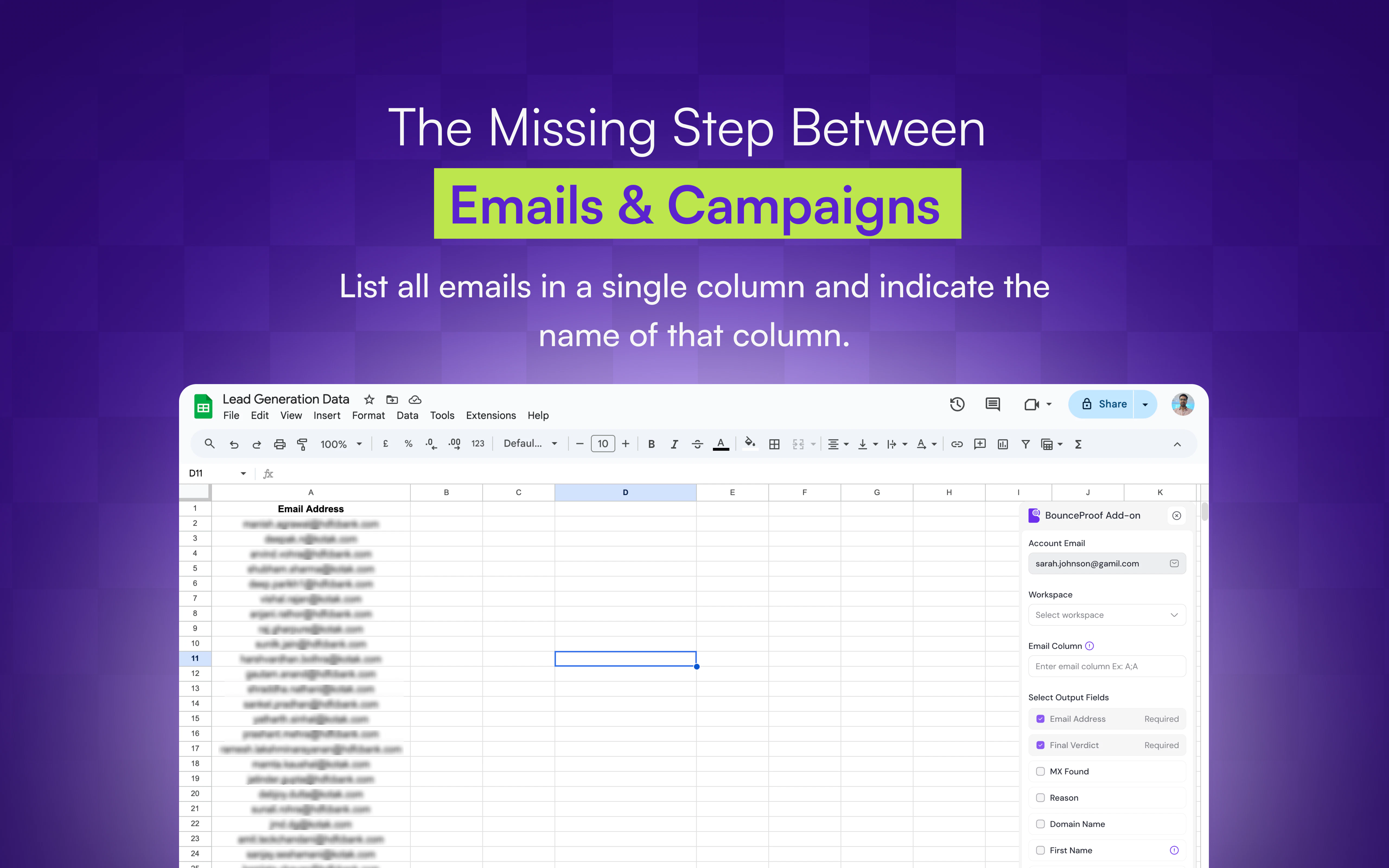The easiest way to verify emails, now in Google Sheets.