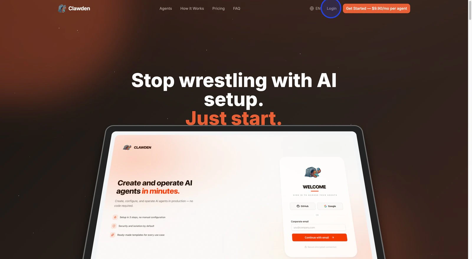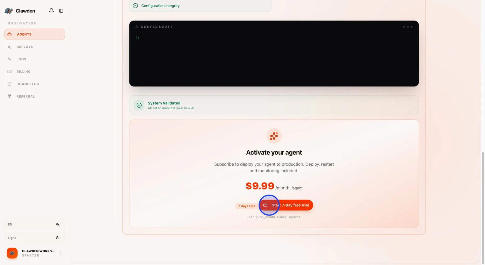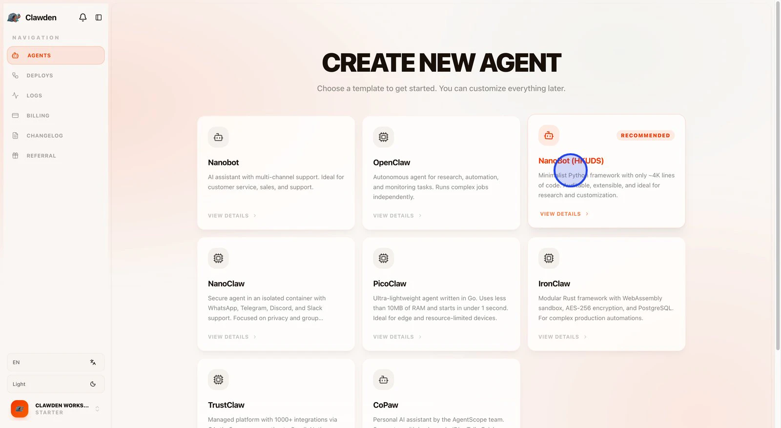 Everyone's talking about AI agents — but setting one up from scratch requires engineers, API configurations, and hours of debugging. Clawden is an OpenClaw-powered dashboard with pre-built agent templates. Insert your API key, pick a template, and your first agent is running in under 60 seconds. Built for marketing agency owners, consultants, and non-technical founders who want AI working for them — today, not next quarter. 7-day free trial. No credit card required.