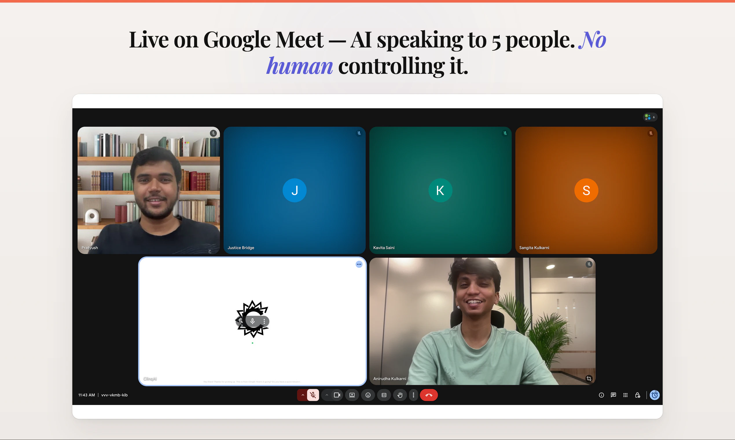 "Hey PH,Anirudha here, co-founder of Clinq.Every meeting bot on the market does the same thing. Join. Record. Summarize. The bot just sits there listening while you do all the work. We thought - what if it actually talked?Clinq joins your Google Meet and speaks to whoever is on the other side. You tell it the context - who the person is, what to - and it handles the conversation autonomously. No script. No human in the loop.We've done 500+ real autonomous calls. We have paying customers. Some prospects don't realize it's AI for the first few minutes.Right now Sales Demos is live - Clinq runs discovery, handles objections, qualifies deals. Onboarding, interviews, research, support are all coming next. The core tech is the same: an AI that shows up and talks.Best way to understand it - paste your Google Meet link at https://clinqai.com/meetings and hear it yourself. That's the only demo that matters.Feedback, hard questions, roasts - all welcome. We're in the comments all day."
