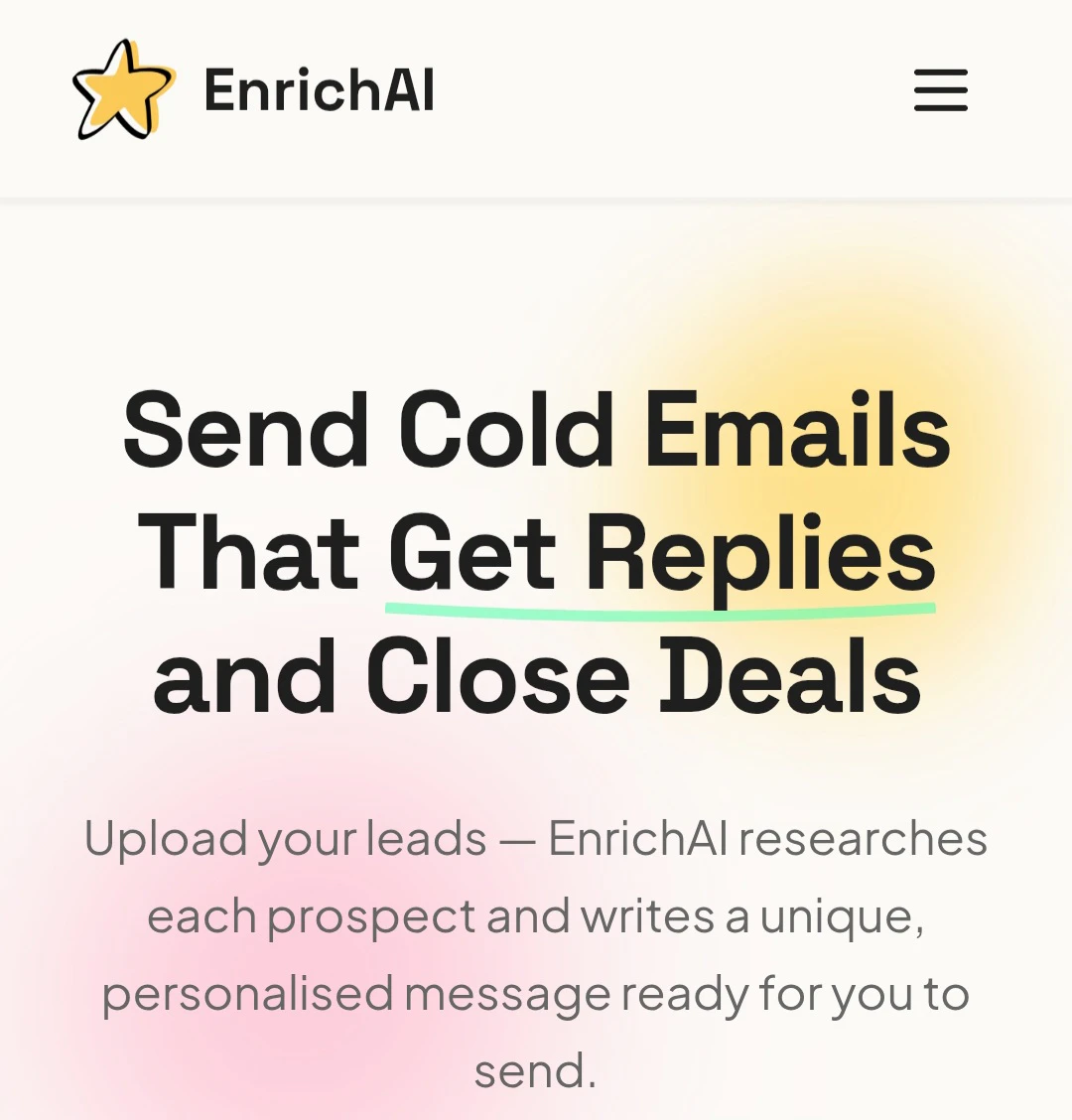 Upload your leads β EnrichAI researches each prospect and writes personalised cold email openers. More replies, zero manual work.
