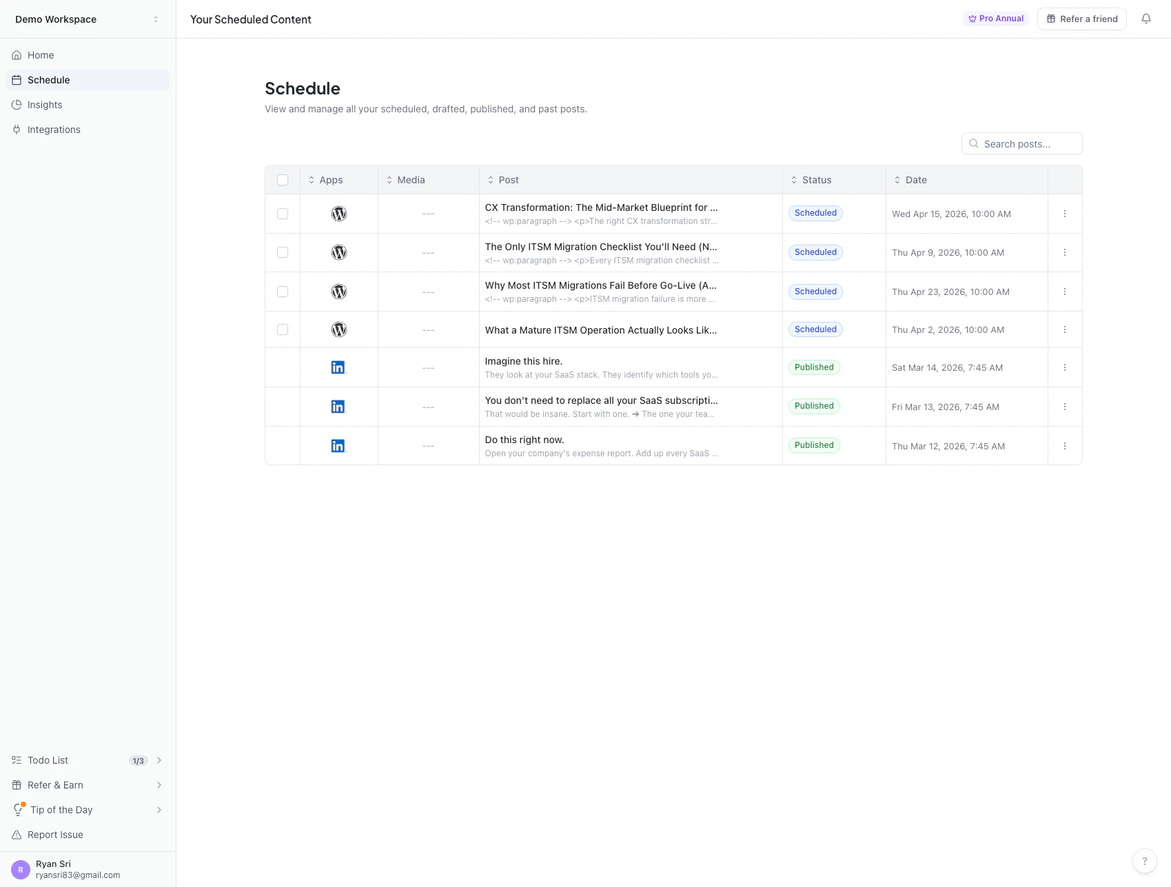 You create content in ChatGPT, Claude, or any AI tool. Then the grind begins. Copy. Paste. Reformat. Switch tabs. Log in. Repeat. Stop grinding. Just Flick It. Connect your platforms once and schedule AI content directly. No copy-pasting. No switching tabs. No separate logins. Just Flick It and it is scheduled. WordPress + LinkedIn today. More platforms soon. Free to start.