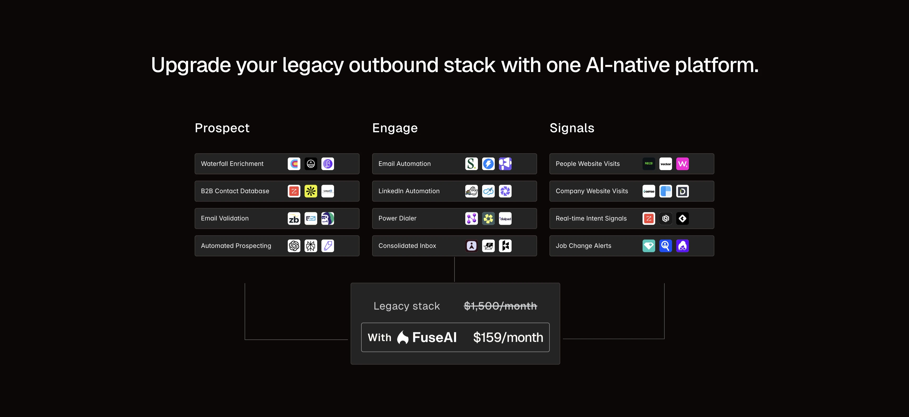 "Hey Product Hunt Community! I’m Saurav, Co-Founder & CEO of FuseAI.Before this, I worked at Deel on GTM Strategy & Ops, where I saw how much effort actually goes into making outbound work at scale. It’s not just hiring great reps, it’s stitching together tools, data, workflows, and constantly maintaining everything behind the scenes.Big companies have an enormous advantage on distribution. They can spend $1,500–$2,000/month per person on tooling and have an entire revenue operations team building outbound systems.Meanwhile, startups and SMBs are stuck duct-taping together low quality tools, starting behind the eight-ball, and often failing on distribution before they ever get a real shot.We built FuseAI to change that.Our goal is simple: give every company in the world access to world-class sales infrastructure without the maintenance, overhead, or costs to empower the best product builders to win.With Fuse, you don’t need 5 tools to run outbound or an internal team dedicated towards managing integrations.It takes 10 minutes to setup instead of 10 weeks.Your dialer, email, and LinkedIn workflows are all connected.You can waterfall enrich data across several vendors. You know exactly who is showing intent.You get access to the same quality of data as companies with GTM engineers and multiple data providers. AI agents will help execute an end-to-end outbound motion, in one place.All for $159/month.No surprises. No gatekeeping. No $20,000 entry level contracts. Just the system modern companies deserve.We been working non-stop over the past year since YC to make this happen, so would love your feedback !!! 🙏🙏🙏"