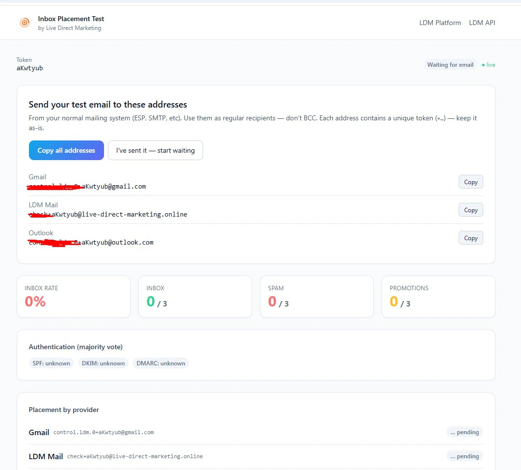 "Hey PH! After 5+ years of B2B cold outreach, the #1 question is always: "Did my email actually reach the inbox?" ESPs confirm SMTP delivery — but that's it. Your message could be sitting in Spam and you'd never know. So I built a free checker: enter your email, get seed addresses across Gmail, Outlook, Yahoo, Mail.ru and Yandex, send your test — and see live where it lands. Plus full SPF/DKIM/DMARC breakdown. Zero signup, zero cost. Just honest placement data. Would love your feedback — what providers or features should I add next?"