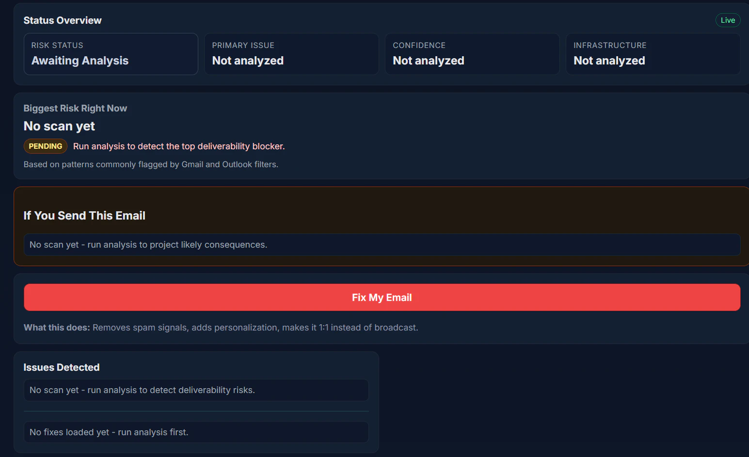 InboxGuard helps you catch email deliverability issues before you send. It analyzes your email for spam risks, domain setup problems, and hidden factors that can hurt your inbox placement. Instead of just a score, it gives clear, actionable fixes so you can protect your domain and improve your chances of landing in the inbox.