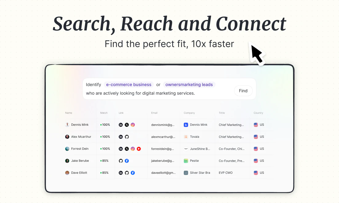 Search, Reach and Connect - Find the perfect fit, 10x faster
