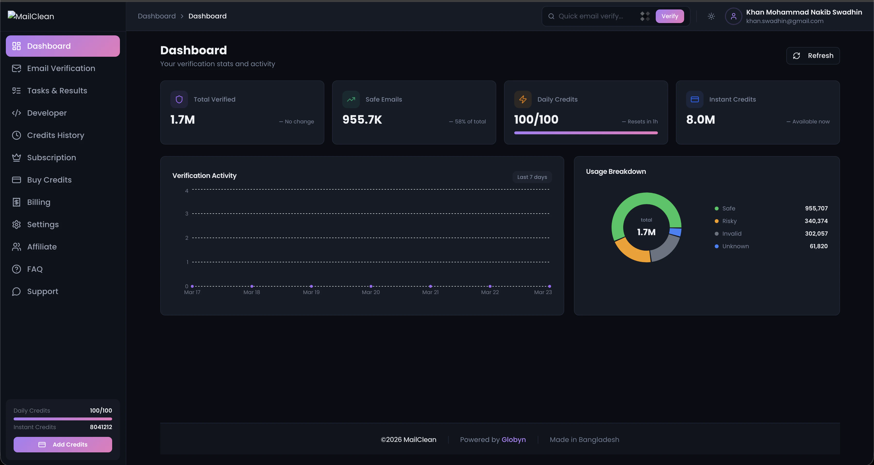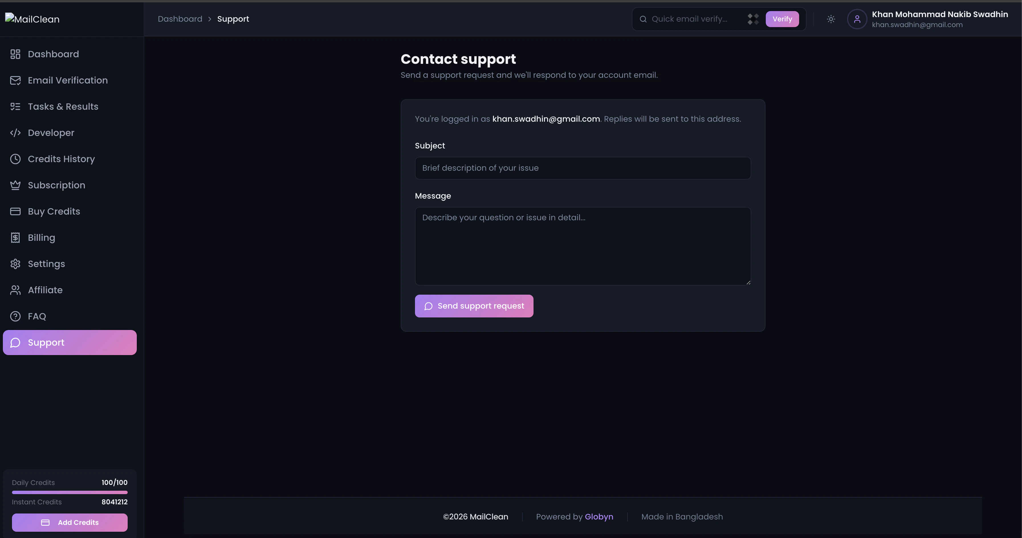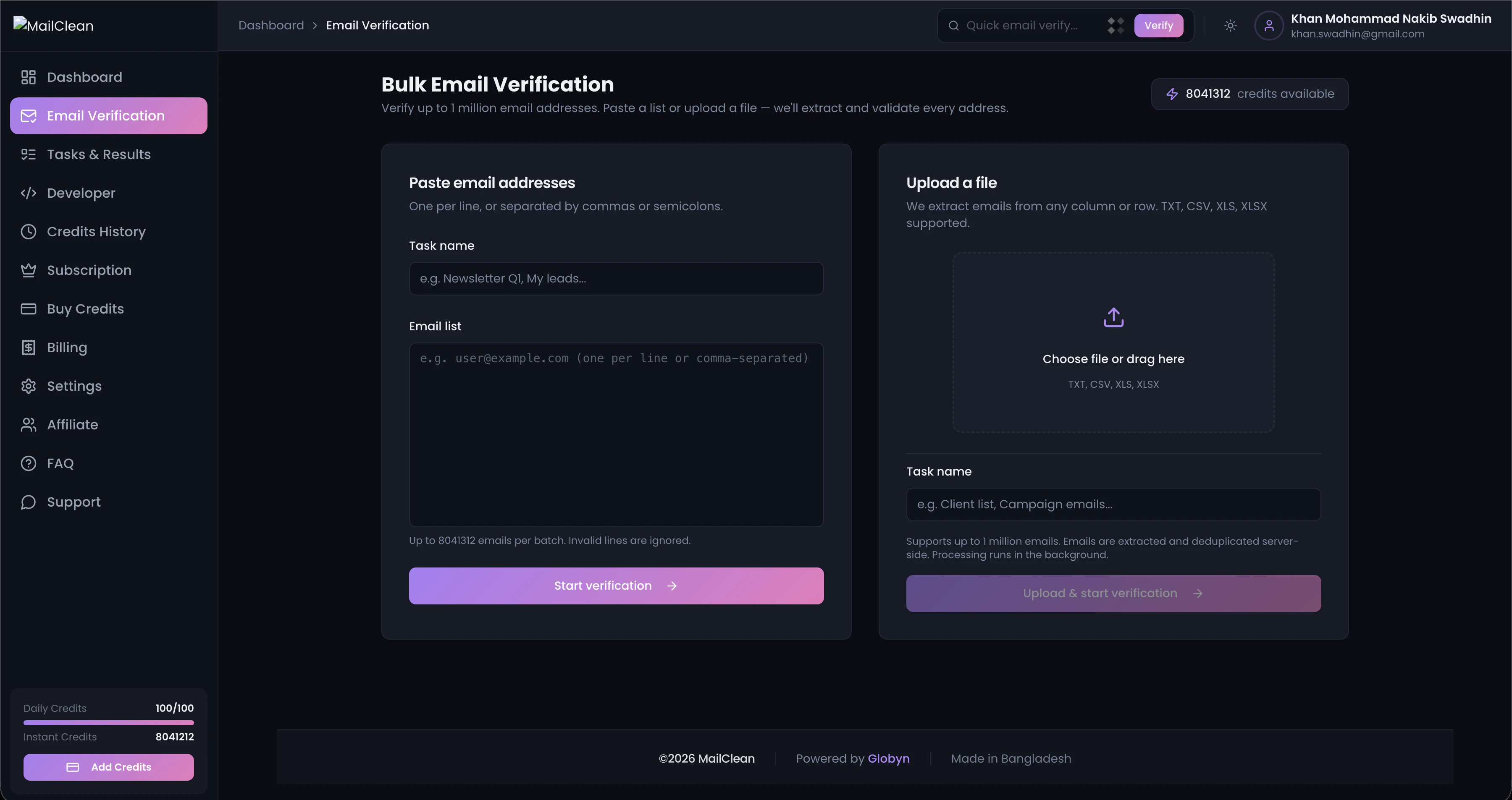 "Hey Product Hunt We built MailClean after seeing one common problem again and again email campaigns fail not because of bad copy but because of bad email lists Businesses were sending emails to invalid, fake, and risky addresses without realizing it MailClean fixes that before you hit send Clean your list reduce bounce protect your sender reputation and improve inbox placement Would love your feedback and support Thanks and Regards Swadhin Khan Mohammad Nakib Co-Founder, Globyn"