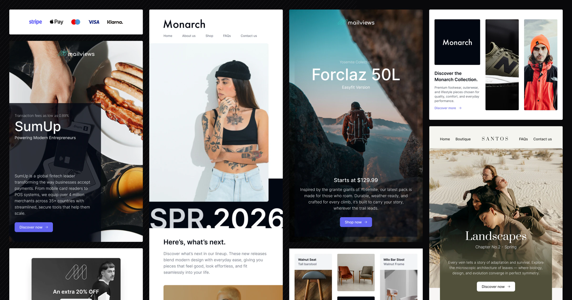 Mailviews is a curated library of responsive email templates and reusable components, built with Tailwind CSS and Maizzle to help you skip tedious setup and focus on building and shipping faster. It includes 200+ expertly crafted components with hundreds of variations, giving you the flexibility to assemble polished, high-performing emails in minutes. Every piece is designed for real production use, so you can move quickly without compromising on quality. Pay once and use everything forever.