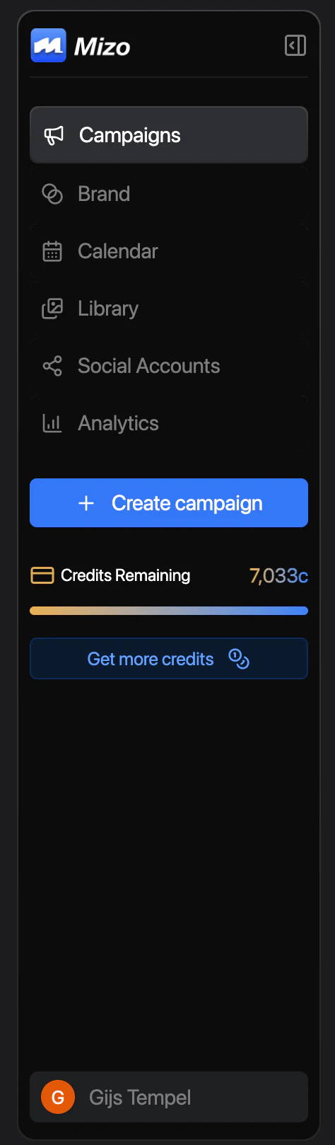 Most marketing platforms focus on managing content - Mizo focuses on creating it. By analysing your website, Mizo generates brand-aligned posts, campaigns, and schedules automatically, removing the need for manual input, design skills, or copywriting. It’s built to help busy businesses stay active online with minimal time and effort.