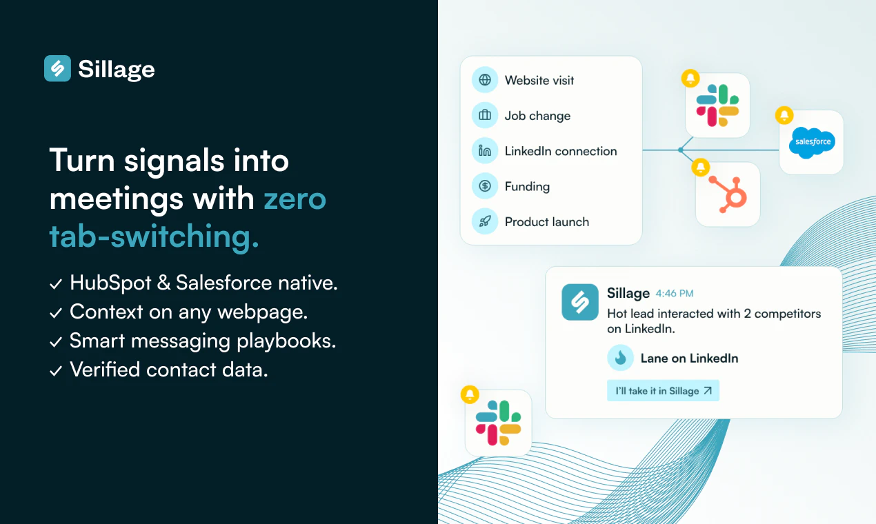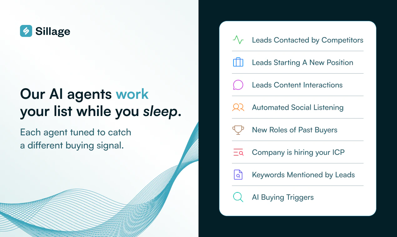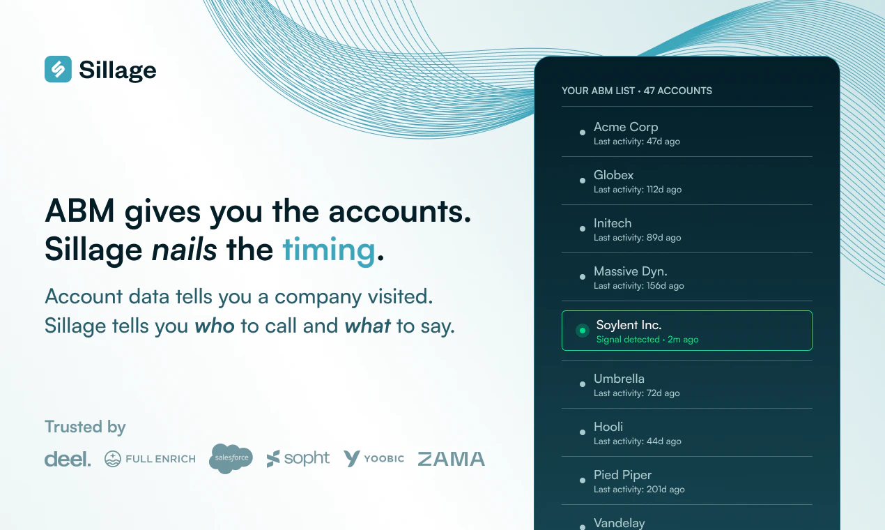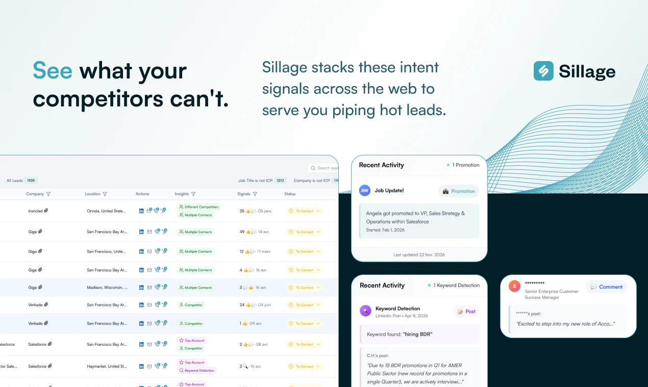 Sillage is an outbound sales platform that uses social, hiring, and competitor signals to identify high-potential accounts and time warm outreach.