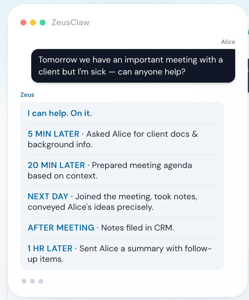 "Today is my last working day at Meta. A ~$400k/year job. Promotion coming. Stability. Comfort. Predictability. I’m walking away from all of it. Not because I got laid off. But because I believe something much bigger is happening. For the past few months, I’ve been building something exciting: 👉 Zeus — an AI employee, not another AI tool 🌐 https://zeus.rocks Today, we’re releasing the early preview. Most “AI agents” today are just: glorified workflows prompt → response machines tools waiting for instructions That’s not an employee. A real employee: has identity lives inside your team understands context takes initiative So we built Zeus differently. Zeus is an AI teammate that actually works. Add it to Slack → it joins like a real coworker Give it access to your tools → Notion, GitHub, etc It reads conversations, builds context, and acts It doesn’t wait. It watches, thinks, and executes. We use it daily: finds potential customers follows up automatically monitors metrics and flags issues posts daily summaries identifies blockers and risks At some point we realized: 👉 we didn’t need to hire for these roles anymore The biggest shift isn’t automation. It’s this: Software that decides what to do next. Not just executes tasks — but figures out the tasks. Of course, this raises real concerns: Can you trust it with real data? Can you trust its decisions? We’re building: permission controls full audit logs transparent actions So you can verify everything. We’re still early. But one thing is clear: Every company will have AI employees. The question is not if. It’s how soon. If you want to try Zeus, leave your contact via https://lnkd.in/gJP8nEUg. 💰 $1000/month (bring your own API key) 💰 $2000/month (fully managed) This is the biggest bet of my life. Let’s see where it goes."